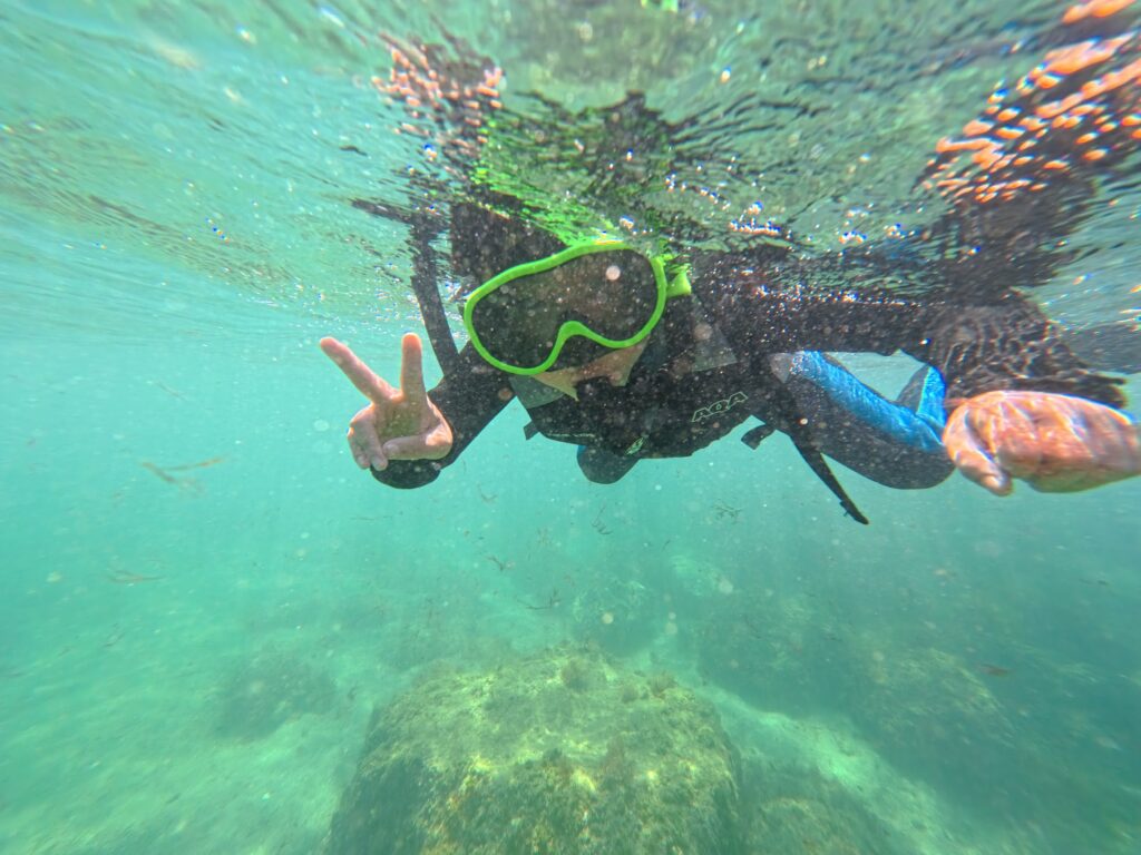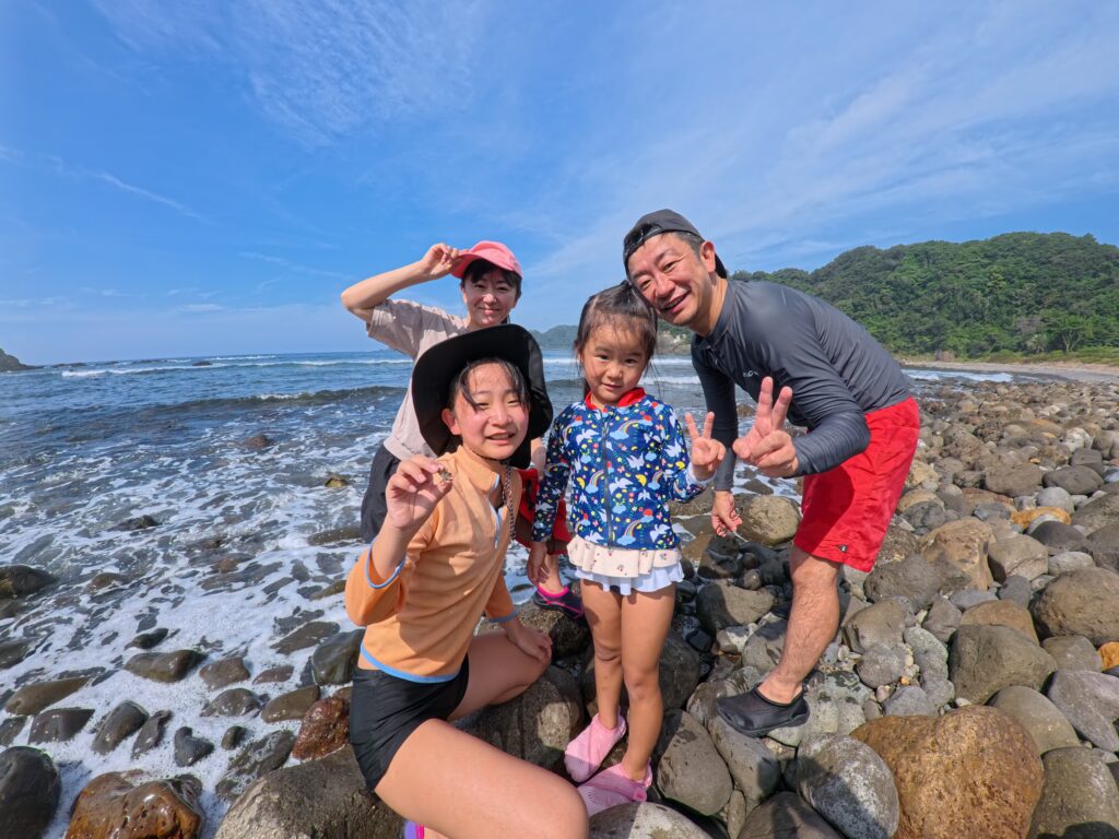 4年ぶり2回目の参加でした。4年前の前回は長女が怖くて泳げず、なんとか顔をつける程度、妻と次女は陸で見守るという、実際にはほぼ磯観察だけの参加でした。そんな中でも私が当時観れた魚たちがとても綺麗で、長女が大きくなったらまた連れてきたいとずっと思っていました。そしてようやく今日泳げるようになった長女を連れて実現することができ、ルリスズメダイをゆび指しながら長女と並んで泳げたときには何とも感慨深いものがありました。長女は4年前から「キャプテン」「トムとジェリー(キャプテンの2人の息子たち)」のことを忘れておらず、ナマコやウニ、カニを一緒に探したのをよく覚えていましたし、今回泳げなくてシュノーケリングが出来なかった次女も、きっと長女と同じように素敵な思い出になったと思います。そして今度は次女と一緒に泳いで魚を観るという目標が出来ました(笑)。今回は小潮で少し残念な部分がありましたが、次回は大潮の時に参加して、また忘れられない素敵な思い出にしたいと思います。キャプテンは髪型が変わったかな?というくらいで、変わらず素敵なお兄さんでした!次女も懐いていて、必ずや覚えてると思います。またぜひ宜しくお願いいたします。