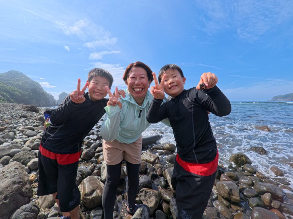 去年沖縄旅行で水中観光船に乗り、海中にいるキレイな魚を見てから、住んでいる関東でも海の魚を見てみたい!!と子どもたちの思いからインターネットで検索をしたところ「エコサーファー」をみつけました。初めての磯観察&シュノーケリング体験で不安でしたが、キャプテンが優しくていねいに教えてくれました。磯観察では、たくさんカニを見つけて大興奮の子どもたち。もちろんおとなも子どもに負けないくらいはまってしまいました。キャプテンにカニの雌雄の見分け方や持ち方、いろいろな種類がいるので捕まえたカニを見せると名前も教えてくれました。シュノーケリングでは、10歳の長男が上手に泳ぎ、沖まで行っていろいろな魚を見たり、離れた岸に上がってそこからジャンプ!関東でもキレイな魚がいることに感動してました。7歳の次男はうまく口呼吸ができず沖まで泳げず悔しがっていました。何でも経験。うまくできなくてもまたチャレンジして次は沖まで泳ぎたい!とリベンジを決めていました。体験が終わったあともカニ探しをする子どもたちを見て、自然から学ぶステキな時間になって嬉しく思いました。次もシュノーケリングするときは絶対に「エコサーファー」と決めました。最高な時間をありがとうございました。