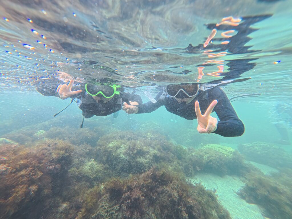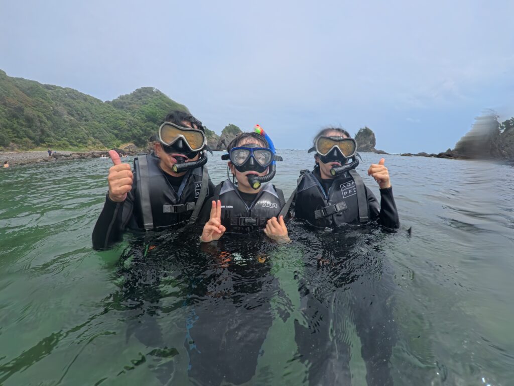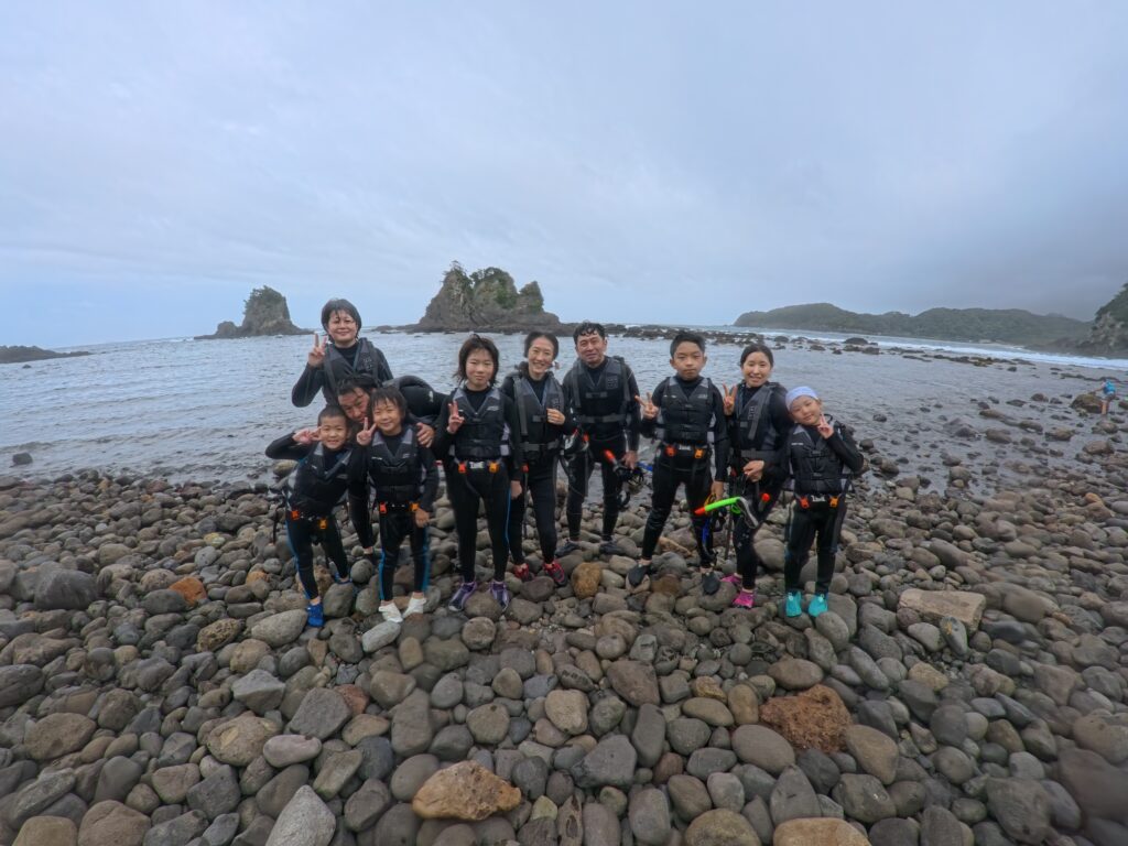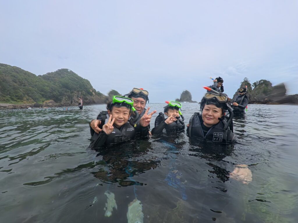 2年前にも参加しましたリピーターです。今回は雨模様で水温が23度と海水が冷たいコンディションで不安でしたが、キャプテンの愉快なトークで楽しむことができました。下の子は途中で体が冷えてしまい休憩しましたが、上の子は「寒さより楽しさが勝つ!」と大興奮でした。ウツボやハコフグなどを見られて、良い体験になりました。